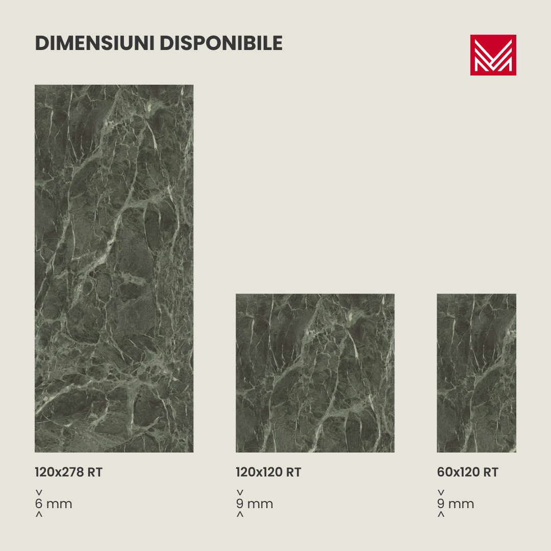 Adaugă o notă de serenitate cu plăcile ceramice FOREST. Cu un verde închis sofisticat, aceste plăci evocă imaginea unei oaze de liniște, aducând un sentiment de calm și relaxare în orice spațiu. Model ideal pentru băi, livinguri sau zone de relaxare, FOREST combină eleganța naturală cu durabilitatea ceramică de înaltă calitate.