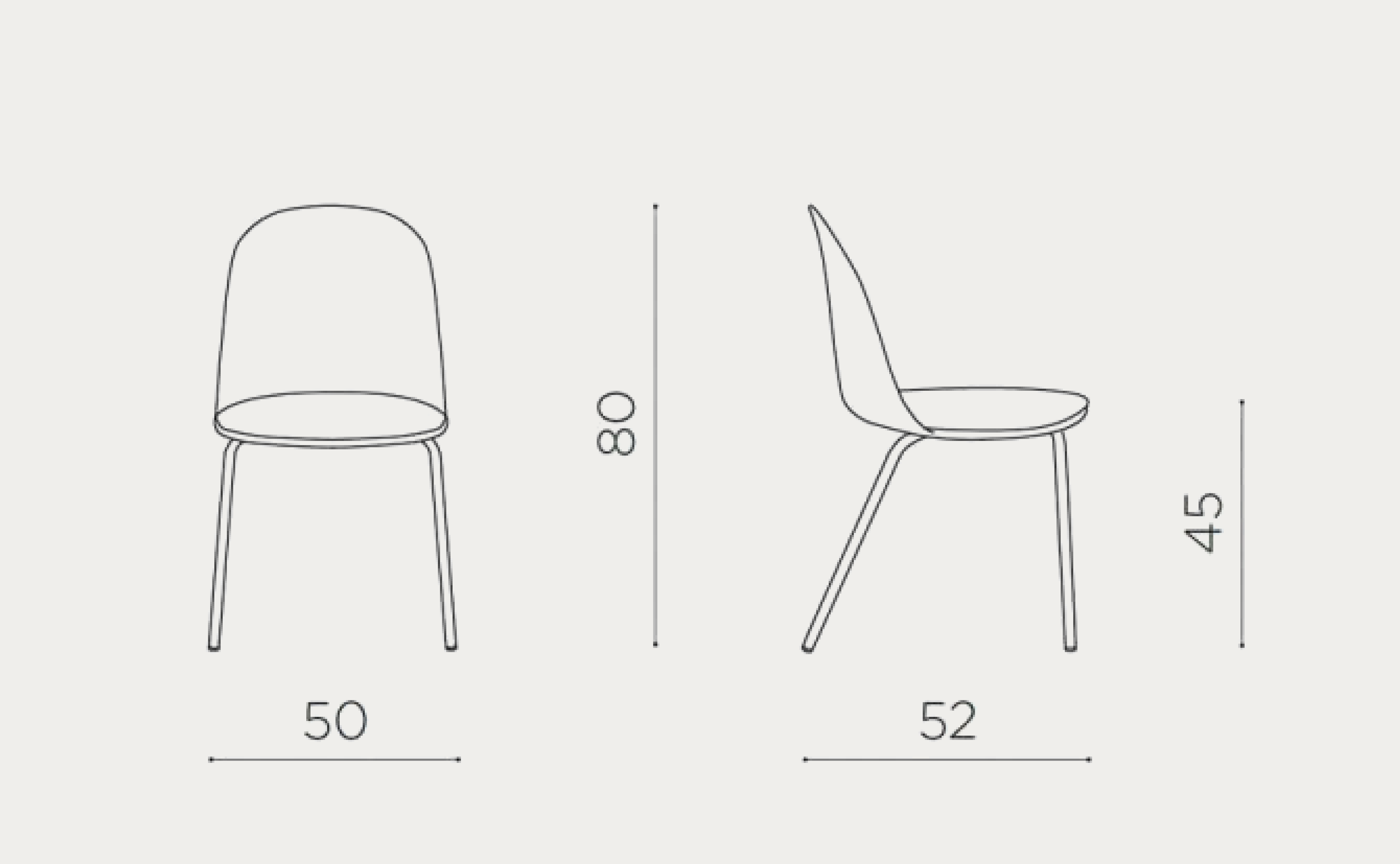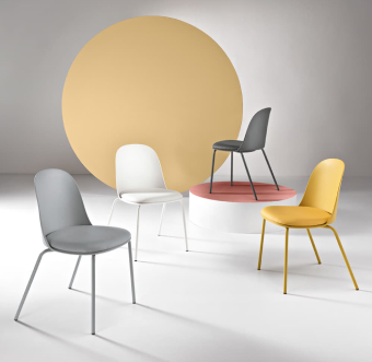Scaun din polipropilenă cu bază din metal vopsit și scaun tapițat cu piele ecologică. Disponibil în diferite culori.