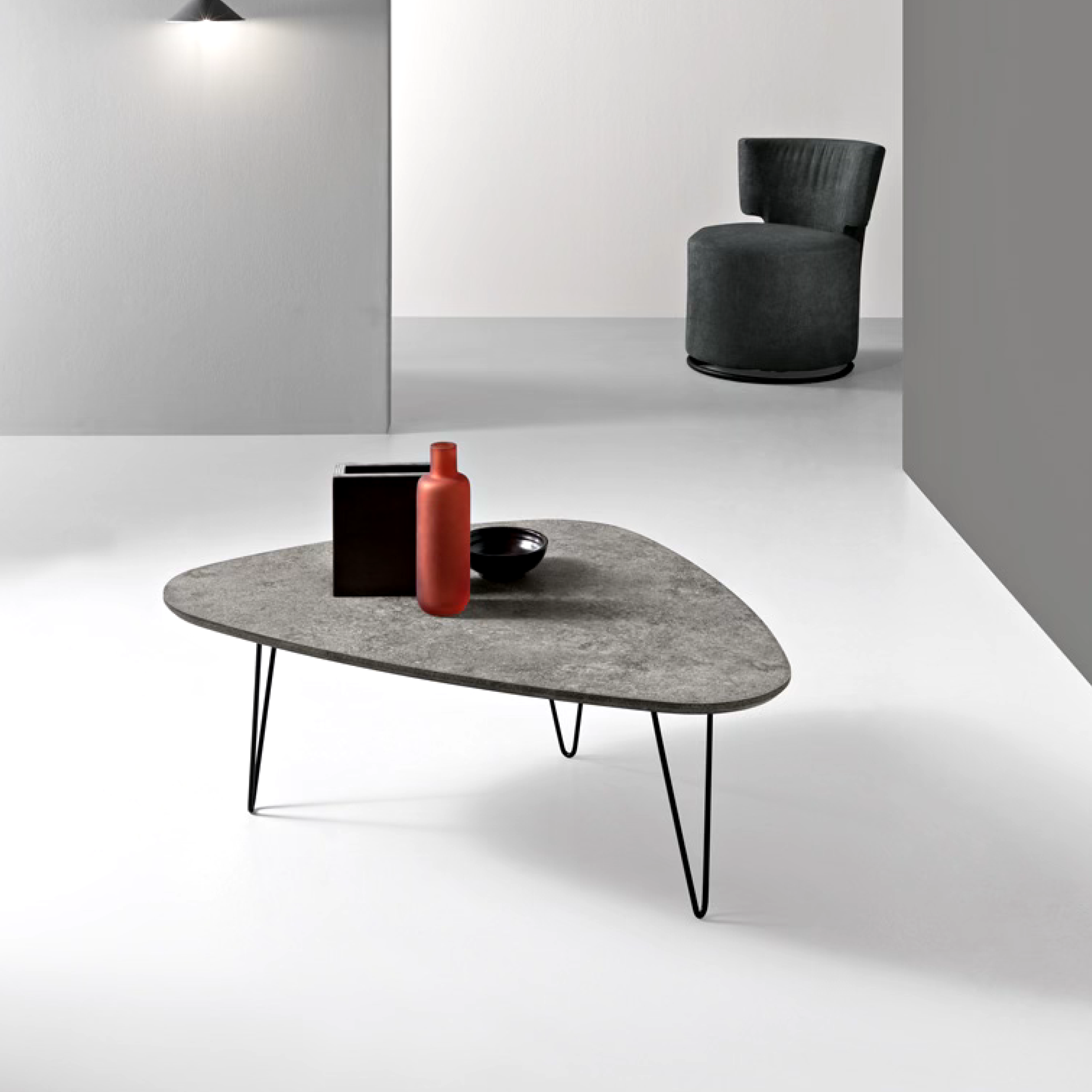 Măsuță de cafea cu blat profilat și picioare din metal vopsit. Disponibilă în diferite culori