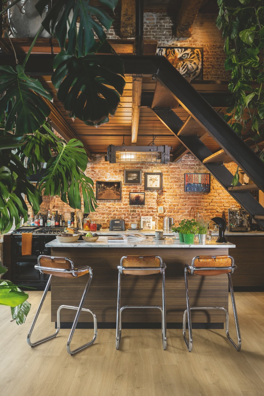 Este o chestiune de "simțire" a ceea ce se potrivește cel mai bine în fiecare cameră și de a lăsa natura să vă inspire. Aduceți lemnul în interior, de exemplu, lăsând un trunchi de copac brut, învechit, să servească drept masă de cafea. Dar podeaua pe care o alegeți reprezintă, de asemenea, o oportunitate de a opta pentru un aspect autentic de lemn. În cadrul colecțiilor de laminate Maximo aveți o gamă largă de pardoseli pentru a aduce lemnul în interiorul casei dvs. într-un mod durabil. Sau optați pentru mobilă cu forme organice, o acoperire de perete cu modele de frunze și decorați după bunul plac cu elemente din natură, cum ar fi scoici sau mușchi. Spre deosebire de tendințele dogmatice de interior, biofilia nu impune reguli și nu este nevoie ca totul să fie perfect. La fel ca filozofia japoneză wabi-sabi, biofilia se referă la frumusețe și perfecțiune.