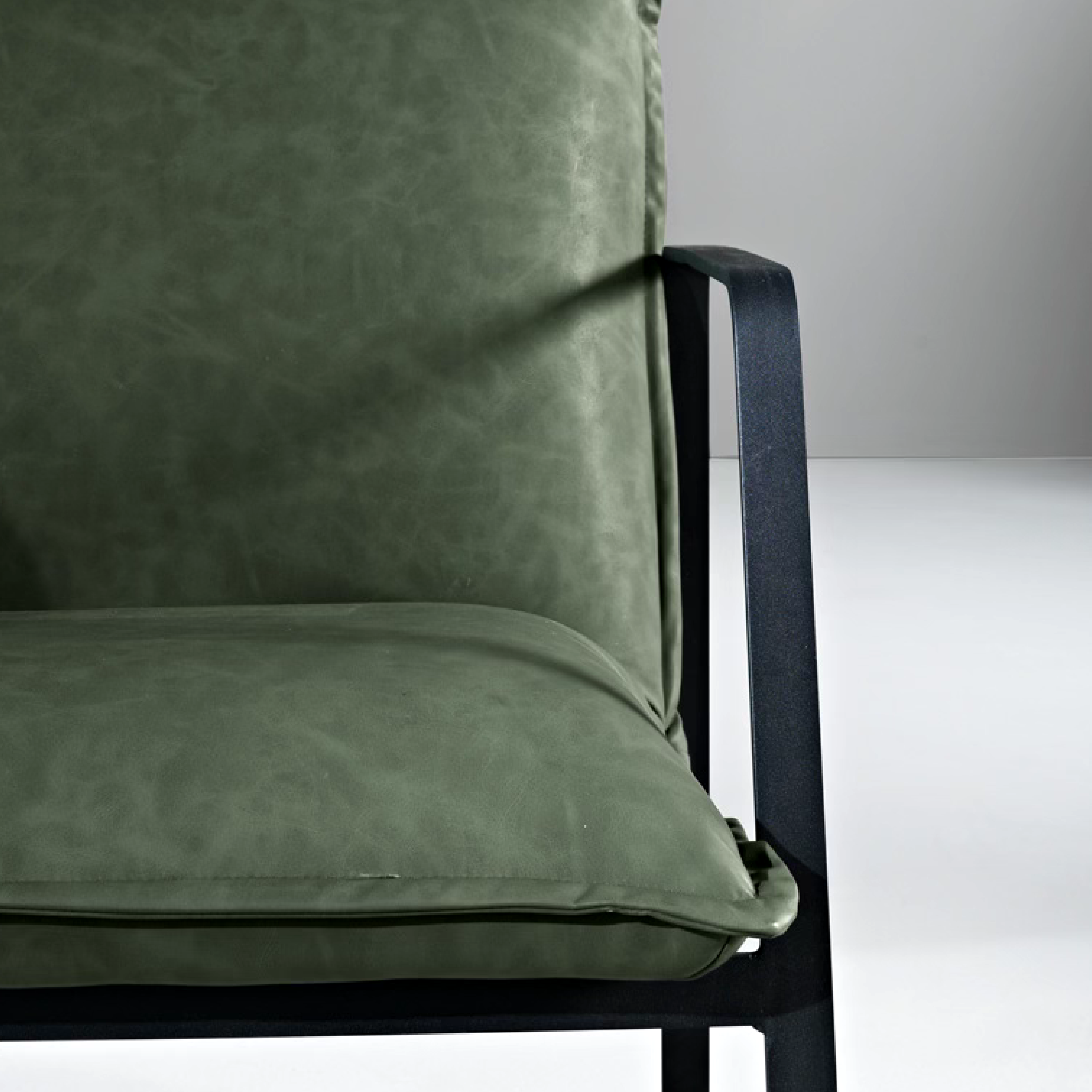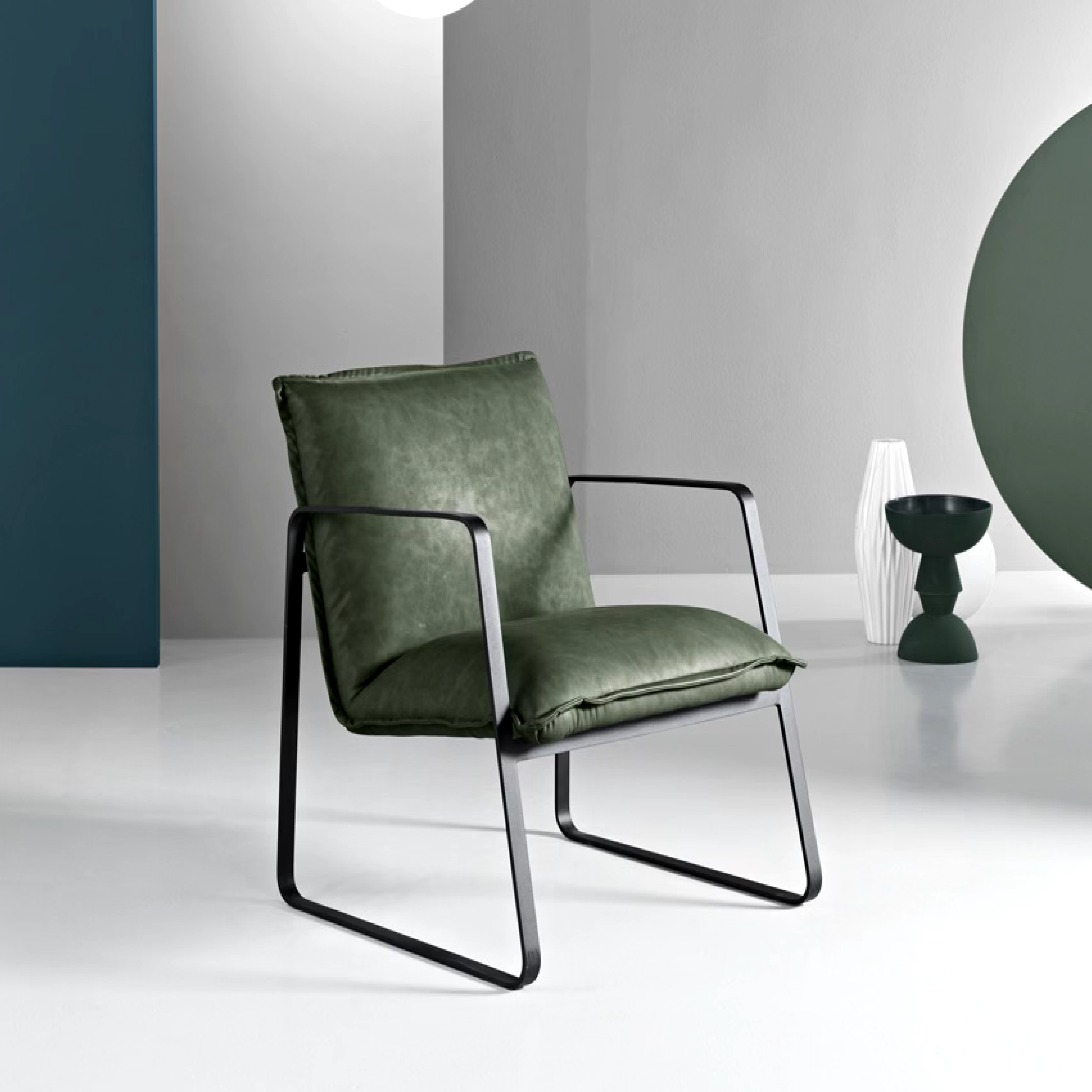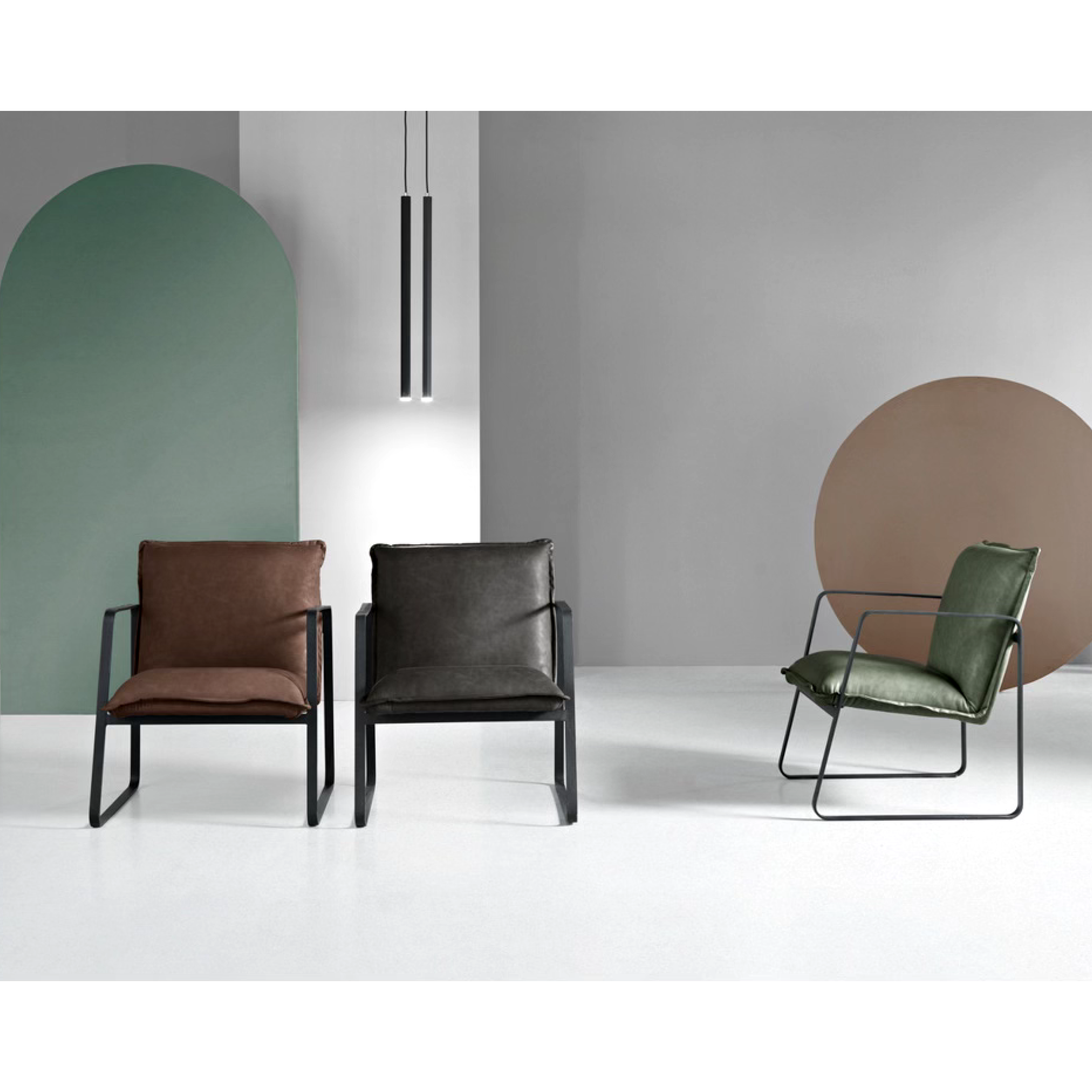 Fotoliu din piele ecologică nuanțată cu cadru din metal vopsit. Disponibil în diferite culori.