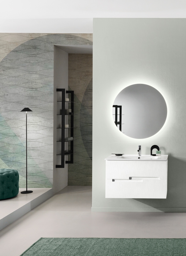 Noua tendință în materie de mobilier de baie este modelul geometric cu dungi, care dă numele acestui nou modular.