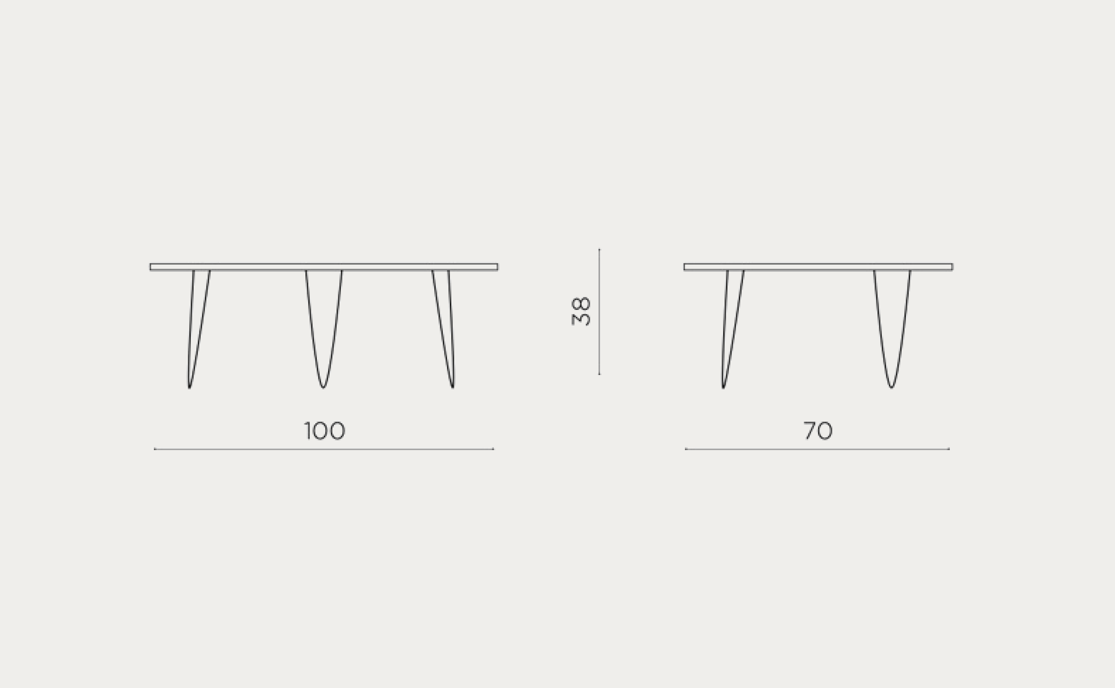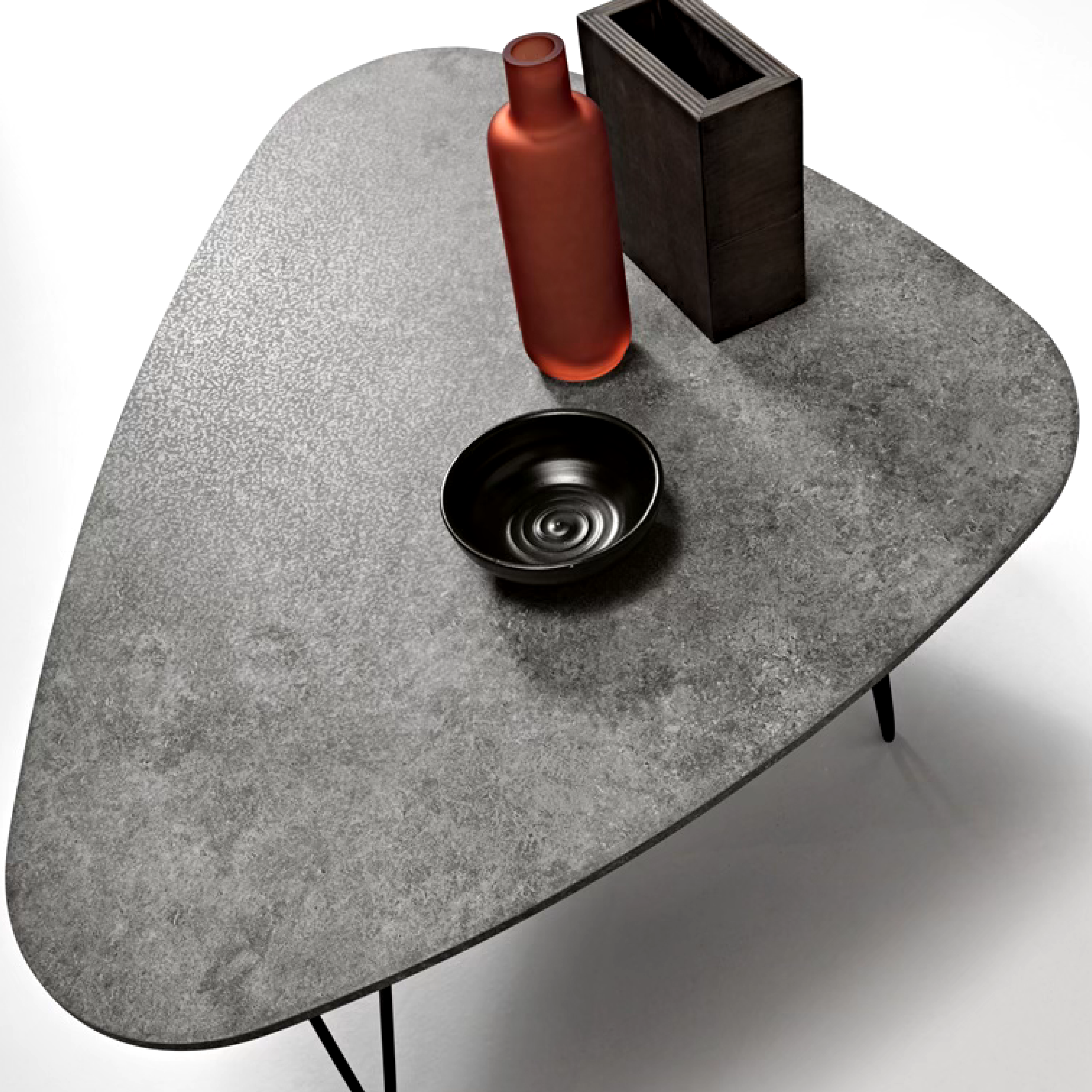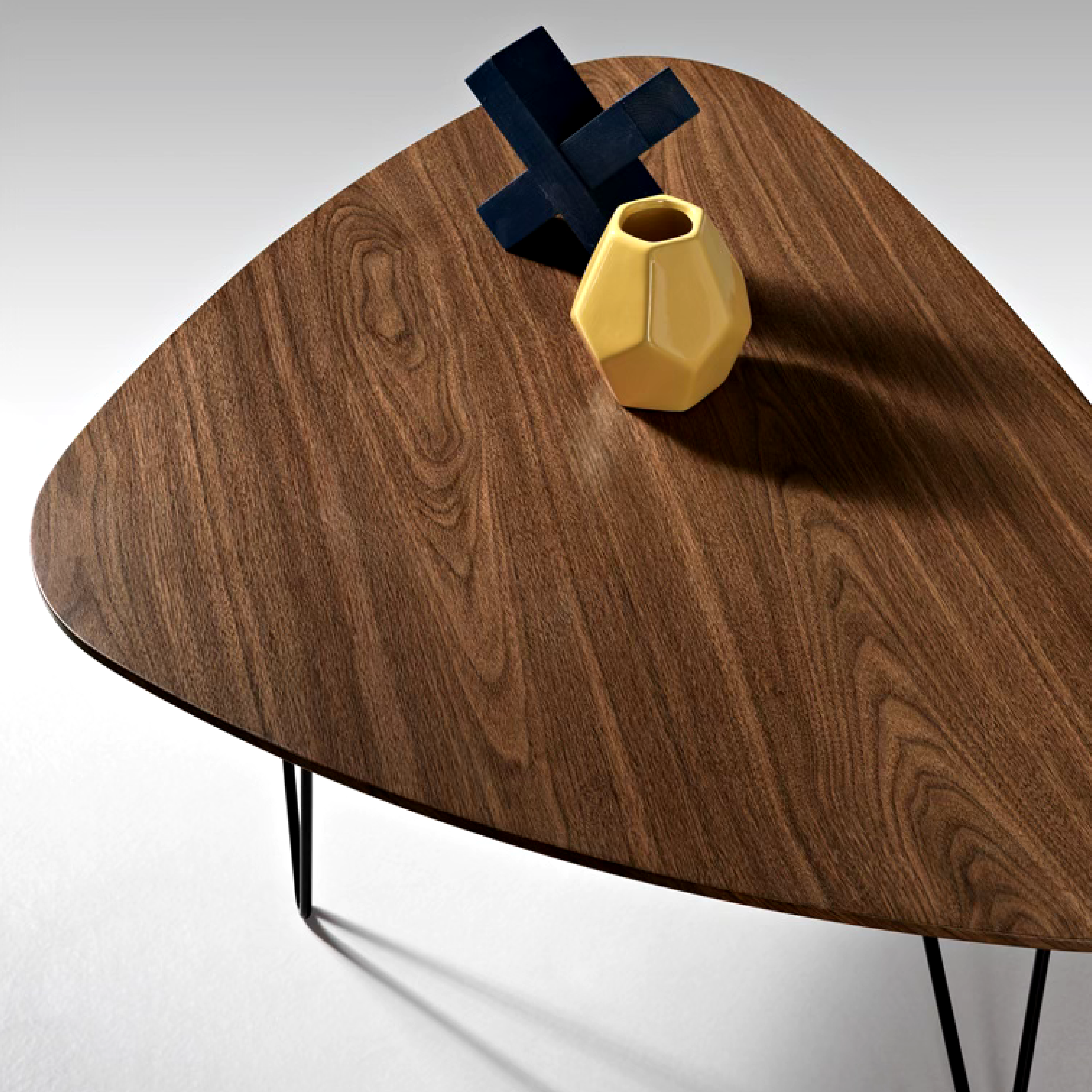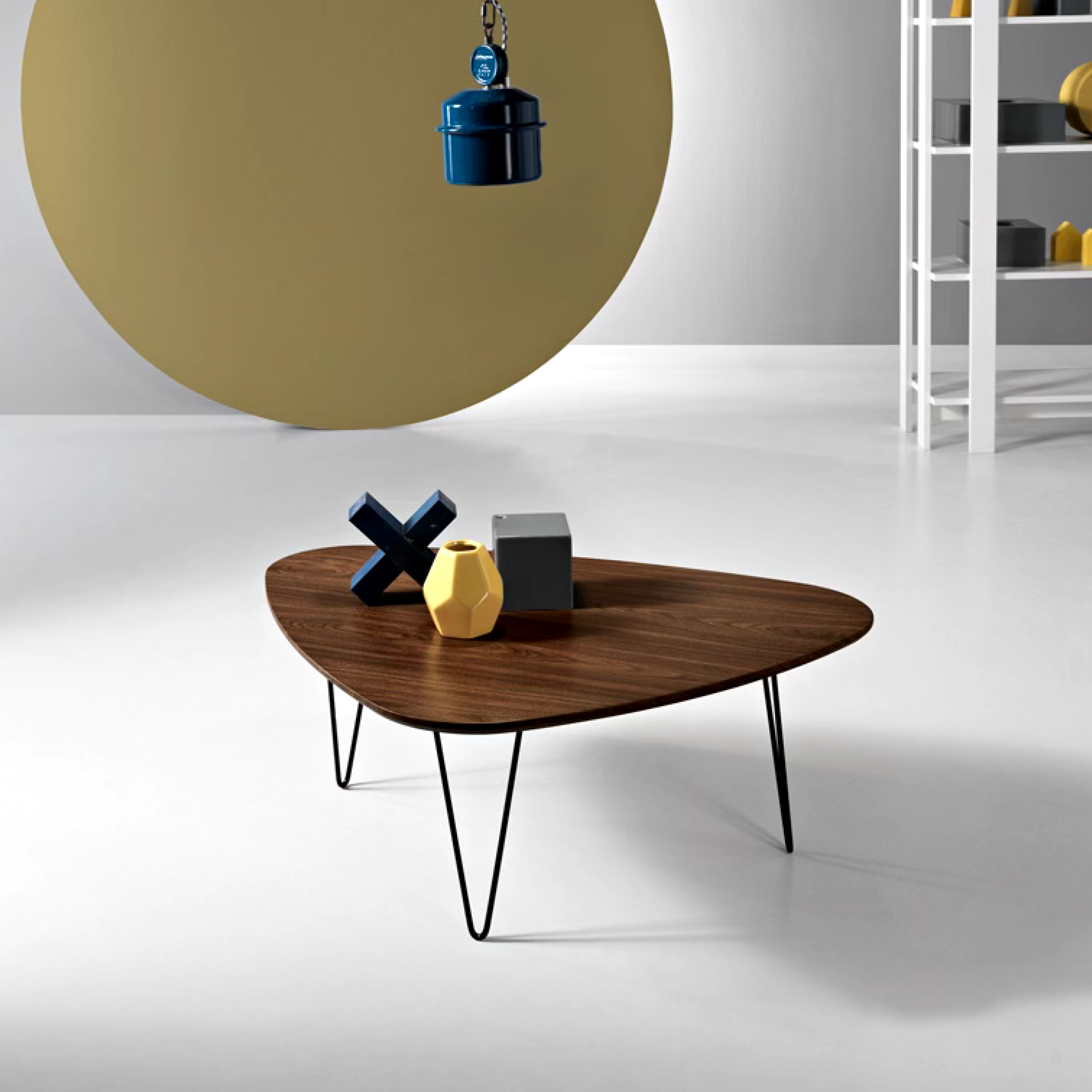 Măsuță de cafea cu blat profilat și picioare din metal vopsit. Disponibilă în diferite culori