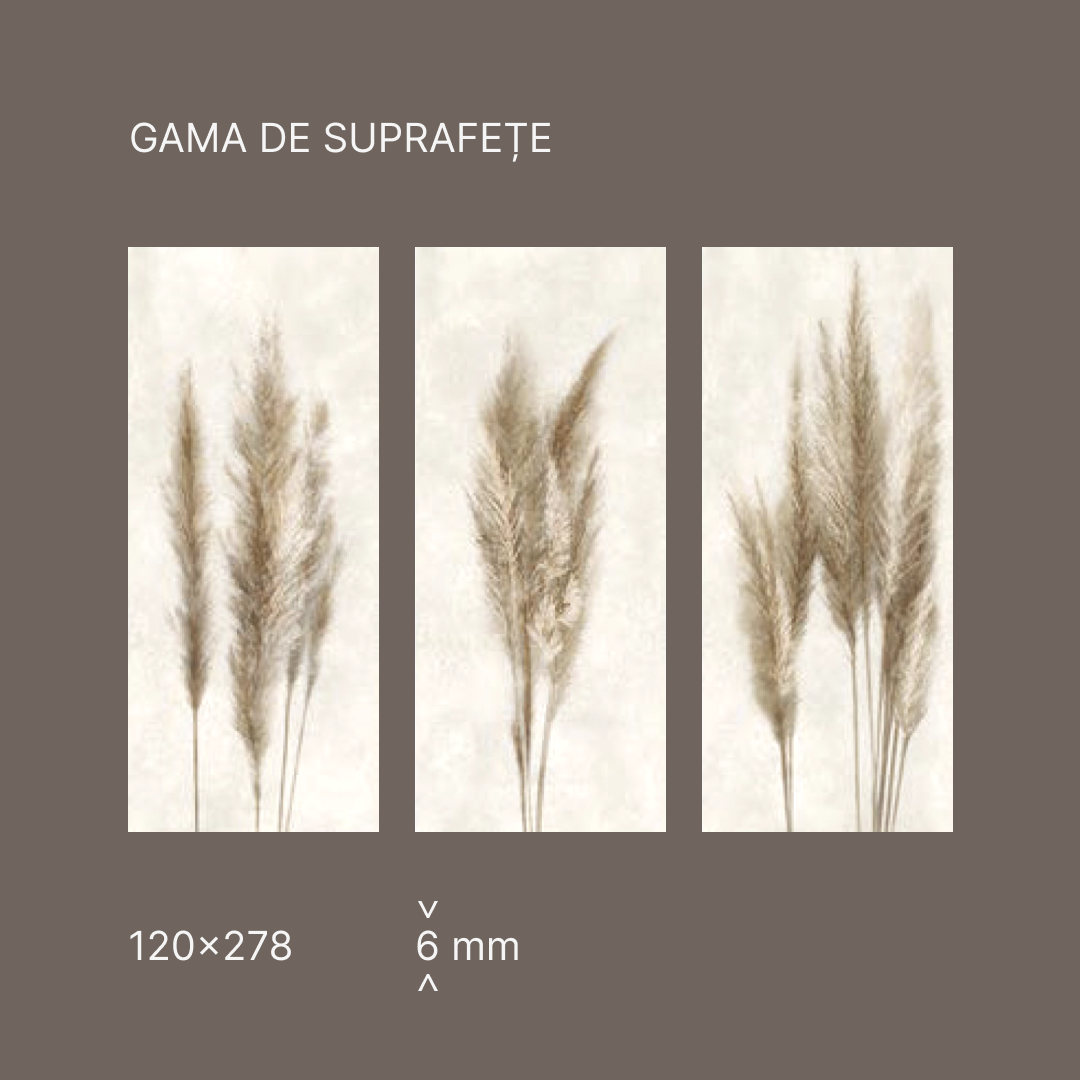Lastra ceramică decorativă PAMPA, cu un finisaj mat, perfectă pentru proiectele tale de design interior. Această placă are dimensiunile de 120x278 cm și o grosime de 6 mm, aducând un aer modern și rafinat în spațiul tău. Fabricată în Italia, oferă calitate și durabilitate superioare.